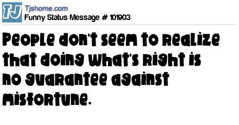 X People don't seem to realize that doing what's right is no guarantee against misfortune.