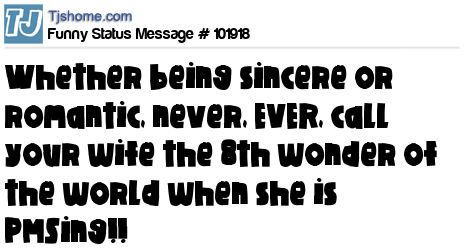 X Whether being sincere or romantic, never, EVER, call your wife the 8th wonder of the world when she is PMSing!!