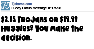- # 74232 $2.75 Trojans or $19.99 Huggies?? You make the decision.