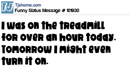 - # 208720 Just spent 45 minutes on the treadmill. Tomorrow my goal is to turn it on.