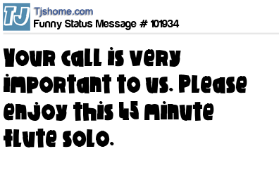 - # 78166 Telus: “Your call is very important to us, Please enjoy this 40 minute flute solo.” :(