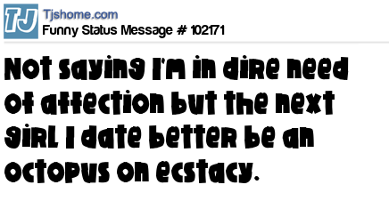 X is Not saying I'm in dire need of affection but the next girl I date better be an octopus on ecstacy.