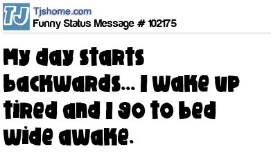 - # 29578 I seem to start my day backwards. I wake up tired and I go to bed wide awake.