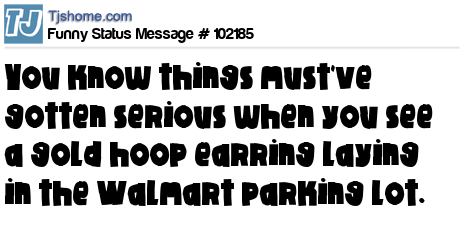 X is You know things must've gotten serious when you see a gold hoop earring laying in the Walmart parking lot.