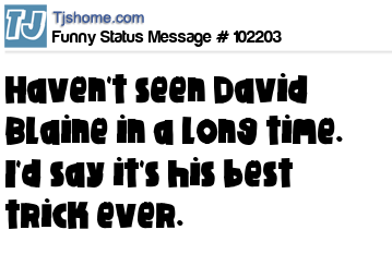 - # 95077 If I ever meet David Blaine, I will just kick him in the nuts and then scream "Ta-daaah!"