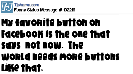 X says My favorite button on Facebook is the one that says “not now.” The world needs more buttons like that.