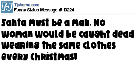 X Santa must be a man. No woman would be caught dead wearing the same clothes every Christmas!