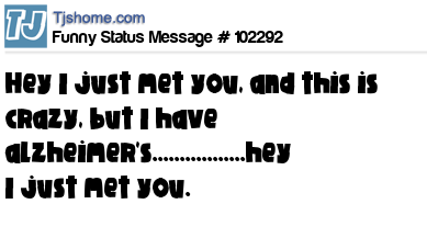 X Hey I just met you, and this is crazy, but I have alzheimer's.................hey I just met you.