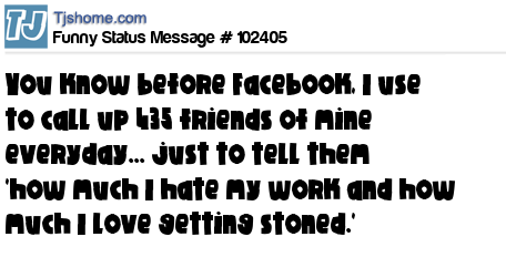 X You know before Facebook, I use to call up 435 friends of mine everyday... just to tell them 'how much I hate my work and how much I love getting stoned.'