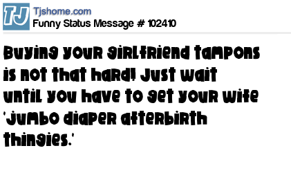 X Buying your girlfriend tampons is not that hard! Just wait until you have to get your wife 'jumbo diaper afterbirth thingies.'