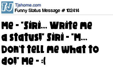 X Me - "Siri... Write me a status!" Siri - "M... Don't tell me what to do!" Me - :(