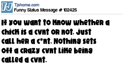 X If you want to know whether a chick is a cvnt or not, just call her a c*nt. Nothing sets off a crazy cvnt like being called a cvnt.