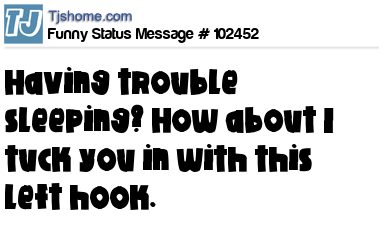 X says Having trouble sleeping? How about I tuck you in with this left hook.