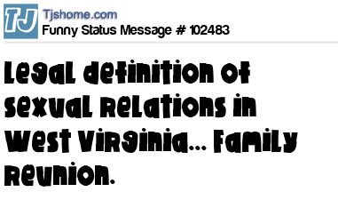 X says Legal definition of sexual relations in West Virginia... Family reunion.