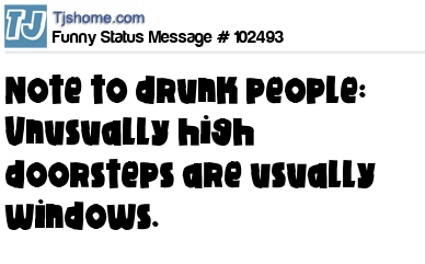 X says Note to drunk people: Unusually high doorsteps are usually windows.