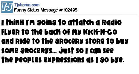 X I think I'm going to attatch a Radio Flyer to the back of my Kick-N-Go and ride to the grocery store to buy some grocerys... just so I can see the peoples expressions as I go bye.