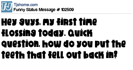 X is Hey guys, my first time flossing today. Quick question, how do you put the teeth that fell out back in?