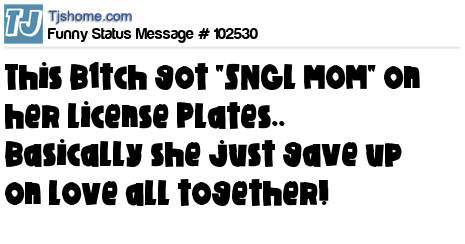 X is This B1tch got "SNGL MOM" on her License Plates.. Basically she just gave up on Love all together!