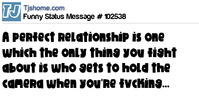 X is A perfect relationship is one which the only thing you fight about is who gets to hold the camera when you're fvcking...