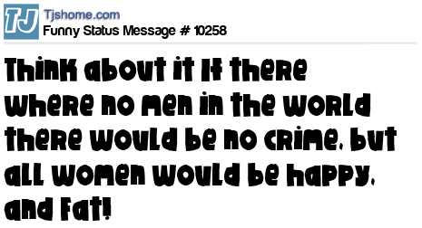 - # 43512 Can you imagine a world without men? No crime and lots of happy, fat women.