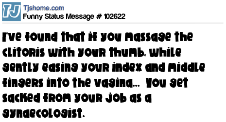 X is I've found that if you massage the clitoris with your thumb, while gently easing your index and middle fingers into the vagina... You get sacked from your job as a gynaecologist.