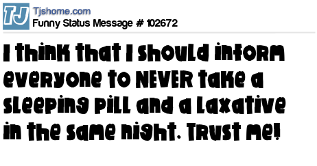 - # 27113 never, ever, ever under any circumstances take a laxative and sleeping pill on the same night