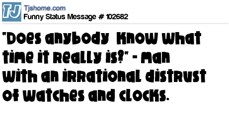 X "Does anybody know what time it really is?" - man with an irrational distrust of watches and clocks.