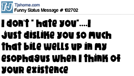 X says I don't " hate you"....I just dislike you so much that bile wells up in my esophagus when I think of your existence