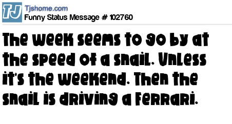 X is The week seems to go by at the speed of a snail. Unless it's the weekend. Then the snail is driving a Ferrari.