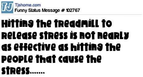 X Hitting the treadmill to release stress is not nearly as effective as hitting the people that cause the stress.......