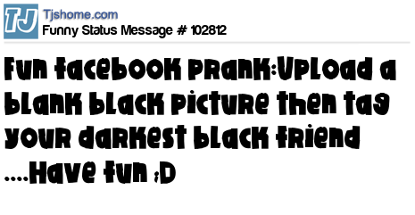 X Fun facebook prank:Upload a blank black picture then tag your darkest black friend ....Have fun ;D