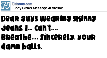 - # 44120 Dear Boys wearing skinny Jeans I can't breathe! Sincerely, Your Balls