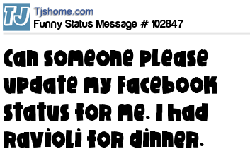 X Can someone please update my Facebook status for me. I had ravioli for dinner.