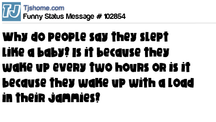 X Why do people say they slept like a baby? Is it because they wake up every two hours or is it because they wake up with a load in their jammies?