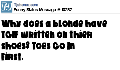 X Why does a blonde have TGIF written on thier shoes? Toes Go In First.