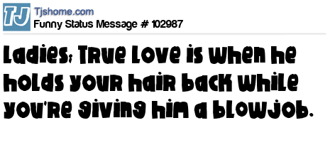 X says Ladies; True Love is when he holds your hair back while you're giving him a bl0wjob.