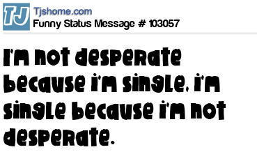 - # 92625 Sorry! i'm not desperate because i'm single. I'm single, because i'm not desperate.