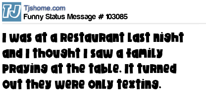 X is I was at a restaurant last night and I thought I saw a family praying at the table. It turned out they were only texting.