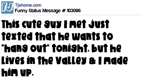 X This cute guy I met just texted that he wants to "hang out" tonight, but he lives in the Valley & I made him up.