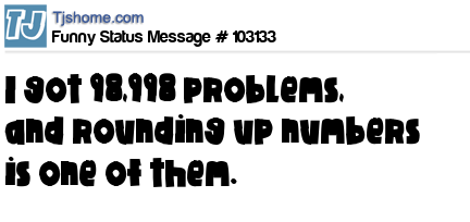 - # 81955 I've got 98.998 problems and rounding up numbers is one of them.