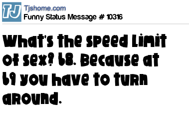 - # 36752 What's the speed limit of sex? 68; at 69 you have to turn around.