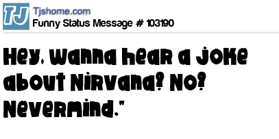 X Hey, wanna hear a joke about Nirvana? No? Nevermind."