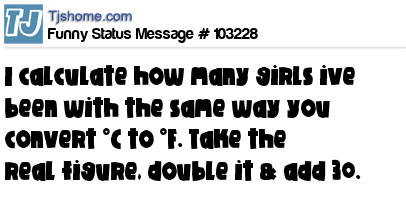 X I calculate how many girls ive been with the same way you convert °C to °F. Take the real figure, double it & add 30.