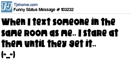 - # 109998 When I text someone in the same room as me, I stare at them until they get it...