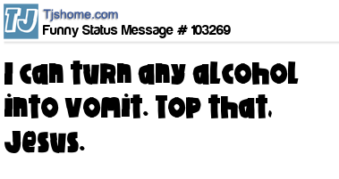 X says I can turn any alcohol into vomit. Top that, Jesus.