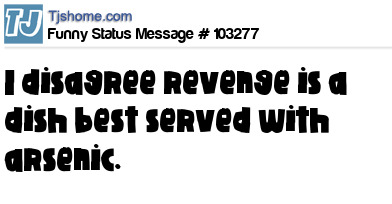 - # 183526 While thinking of revenge two sayings came to mind: " revenge is a dish best served cold" and "revenge is sweet". I therefore came to the conclusion that revenge is ice cream.