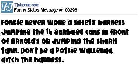 X Fonzie never wore a safety harness jumping the 14 garbage cans in front of Arnold's or jumping the shark tank. Don't be a Potsie Wallenda, ditch the harness..