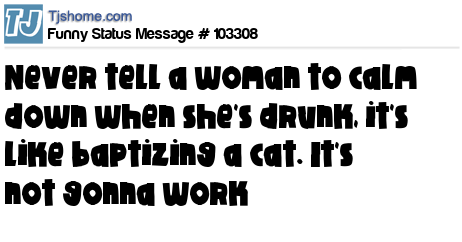 - # 136721 Telling a woman to calm down when she's drunk, works about as well as baptizing a cat !