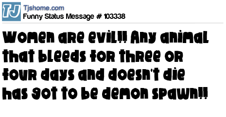 X is Women are evil!! Any animal that bleeds for three or four days and doesn't die has got to be demon spawn!!