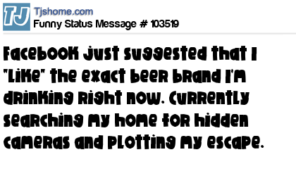 X Facebook just suggested that I "like" the exact beer brand I'm drinking right now. Currently searching my home for hidden cameras and plotting my escape.